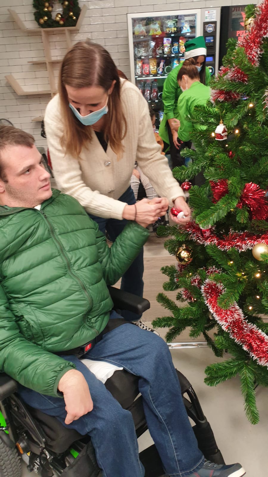 Este jueves nuestros chic@s del Centro de Día y Talleres de Autonomía Personal, se han desplazado hasta las instalaciones de Leroy Merlin España donde han participado en la decoración de un árbol de navidad, que una vez terminado, nos lo han regalado para lucirlo en nuestro Centro.