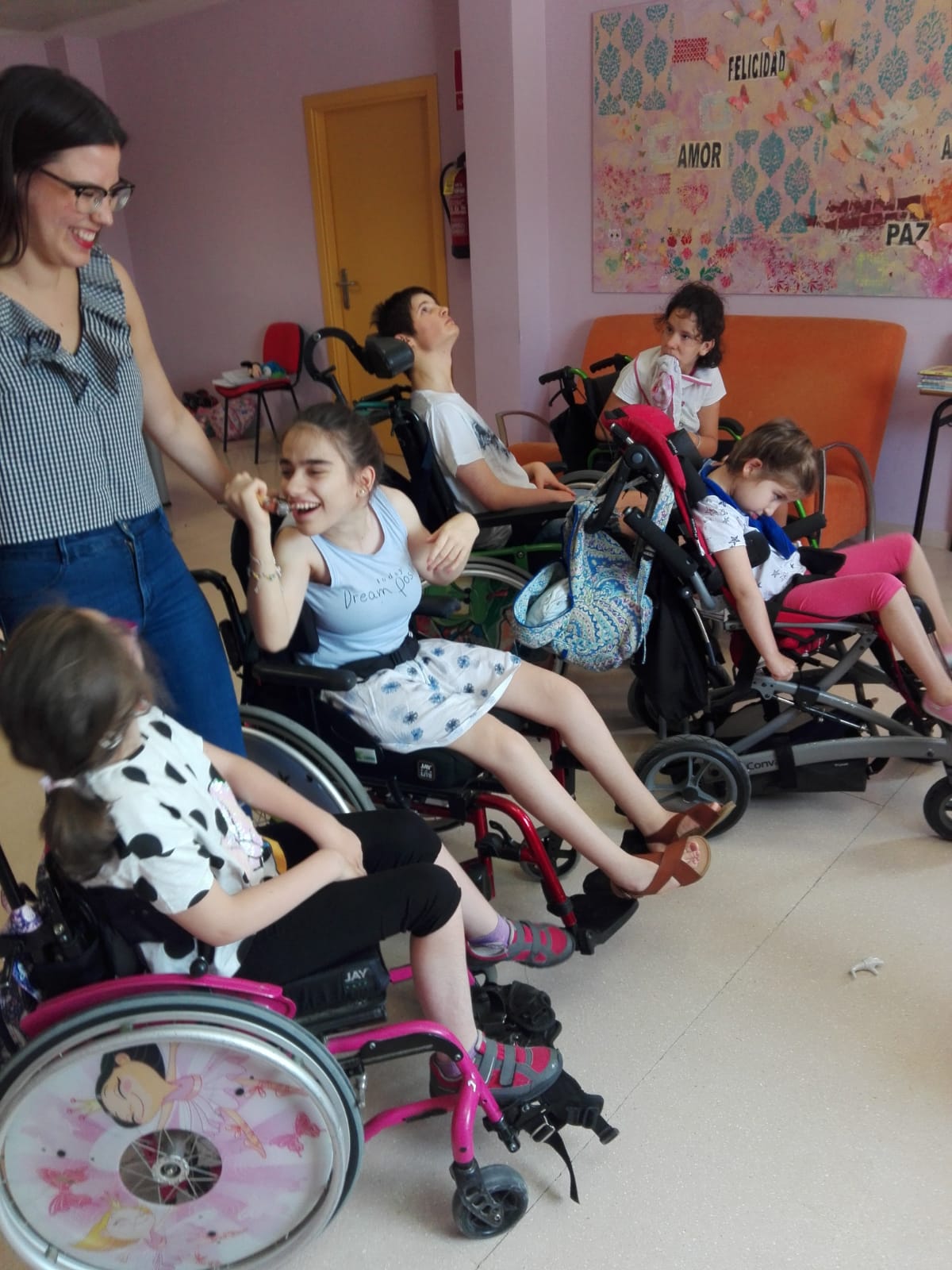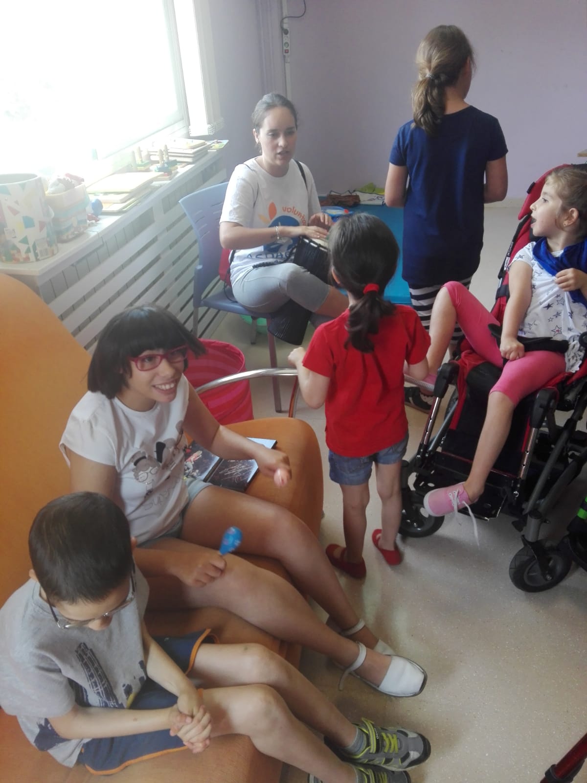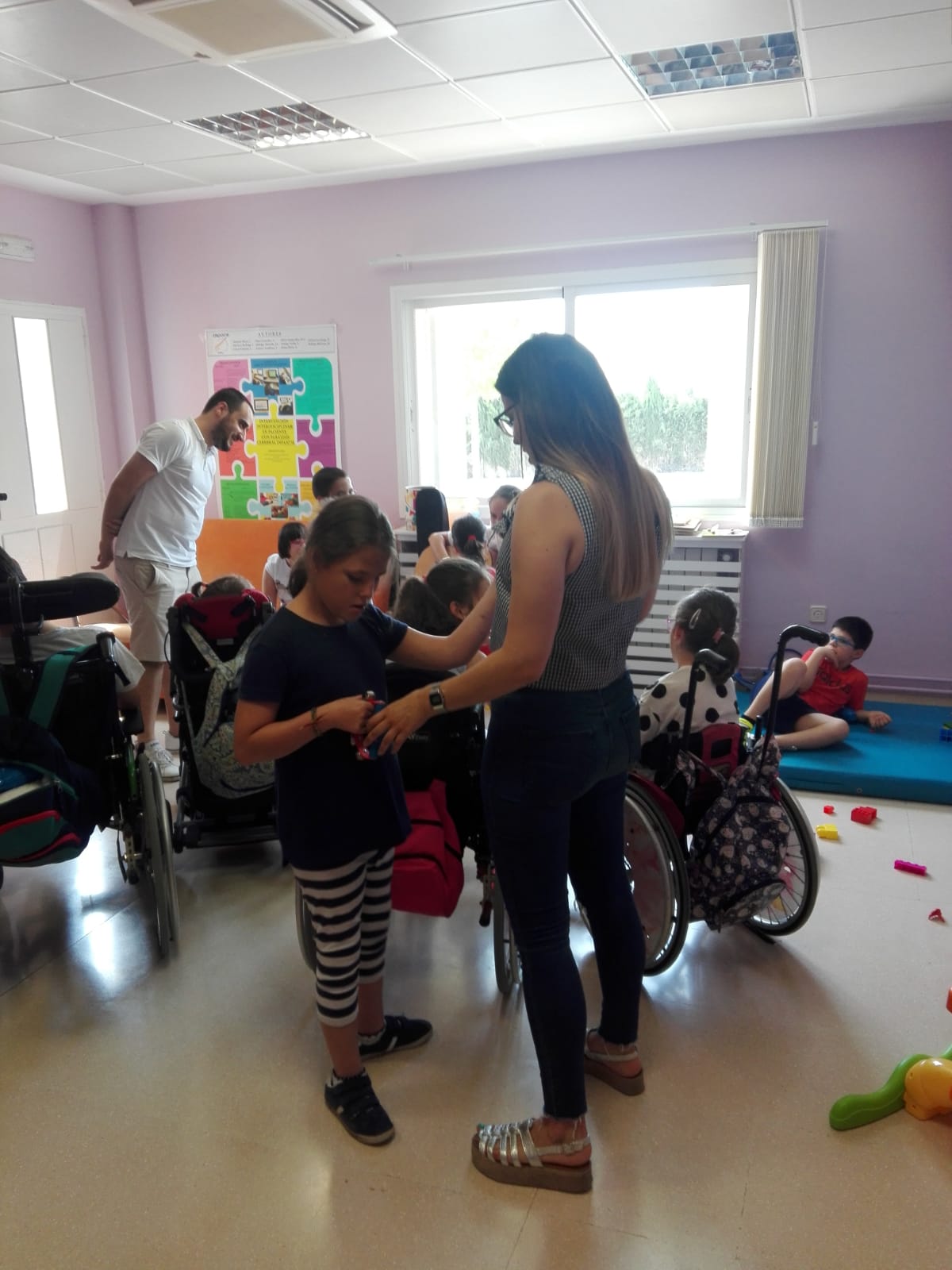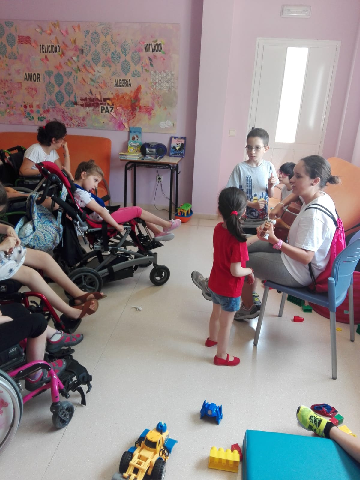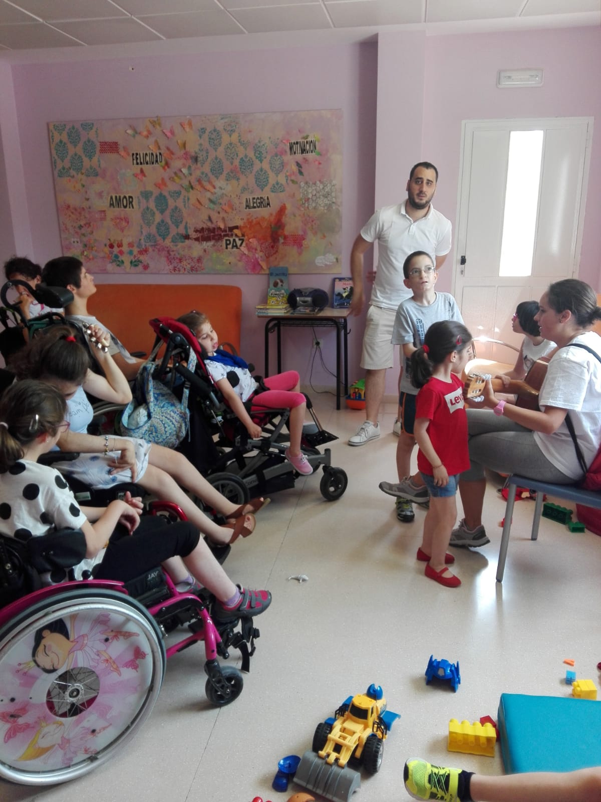 Este lunes ha dado comienzo en nuestro centro la Escuela de Verano que dirige nuestra maestra de educación especial, Carmen Haro. Junto a ella se encuentran una cuidadora y voluntarios de nuestra entidad, en el caso de hoy lunes ha contado con la presencia de nuestra musicoterapeuta, Sara Molina.