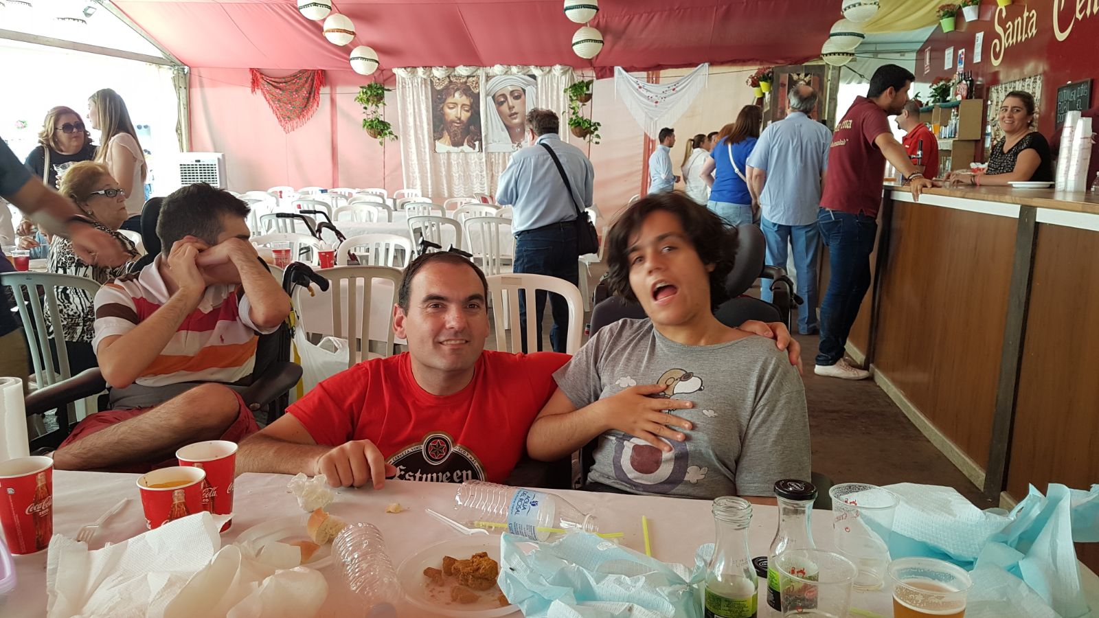 Este mediodía los usuarios del Centro de Día de Aspace Jaén han disfrutado de una jornada lúdica en el recinto ferial “Alfonso Sánchez Herrera” donde han compartido junto con el resto de profesionales una convivencia con motivo de la Feria de San Lucas en la caseta de la Hermandad de la Santa Cena.